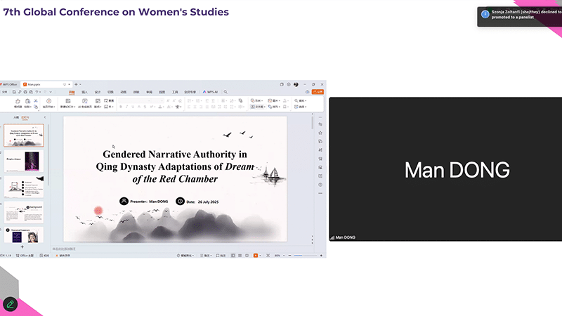 |  | Ms. Man Dong | Who Tells the Tale? Gender, Ideology, and Narrative Framing in Dream of the Red Chamber Adaptations | Master student of Anhui University, China |